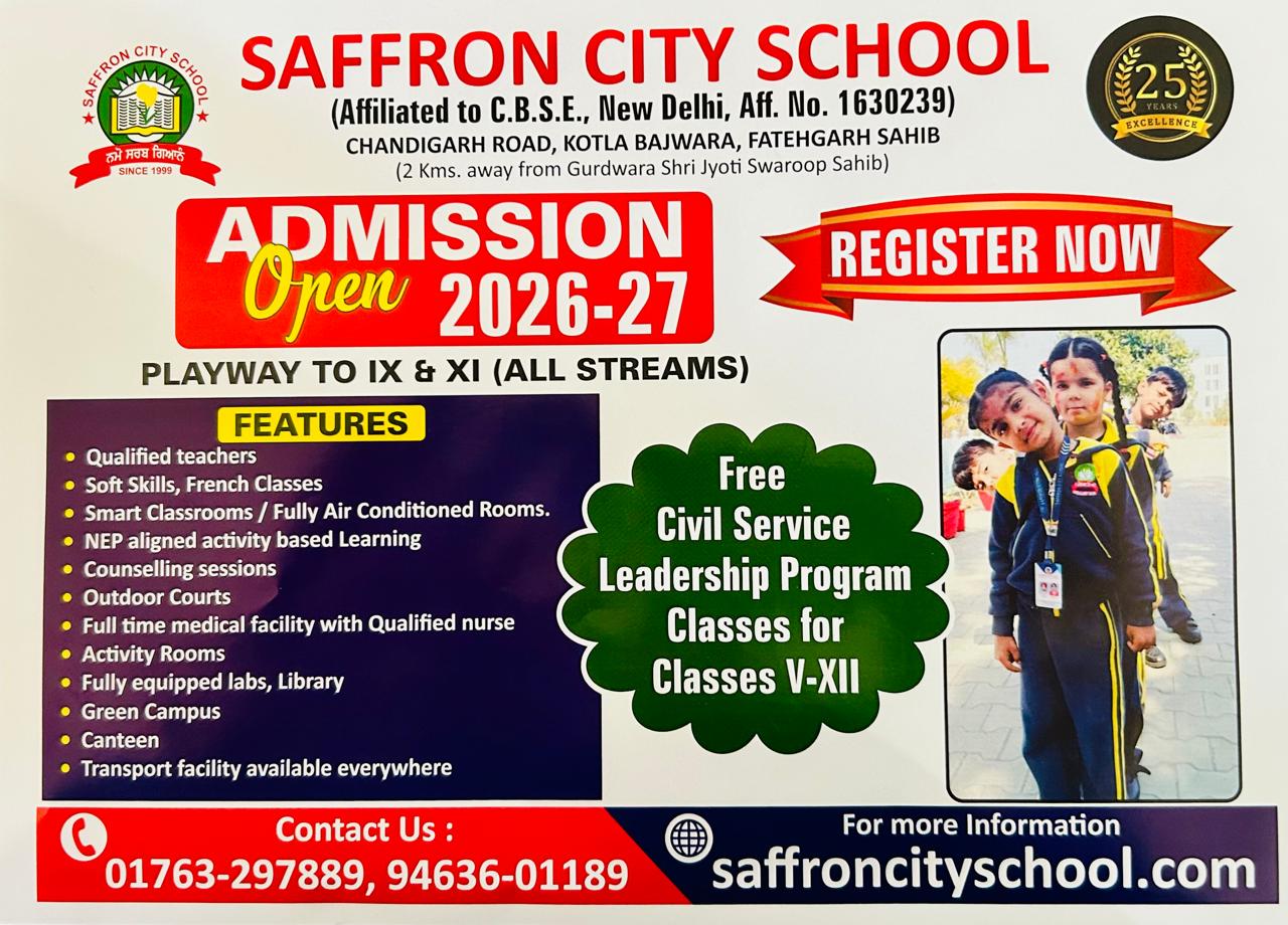 Take a small opportunity, throw in some educational spirit, add the desire to excel in good measure, top it with hard work and perseverence, shake it well with a vision for the future, and you the heady success story of Saffron City School, Fatehgarh Sahib.